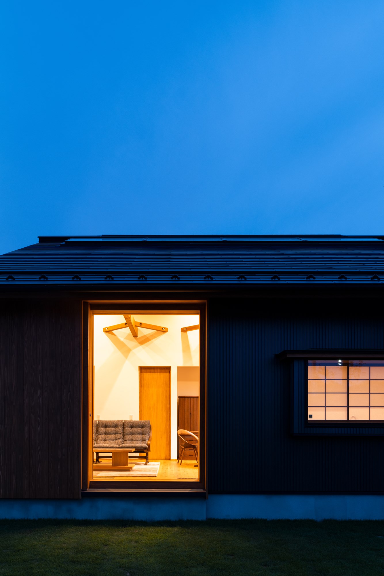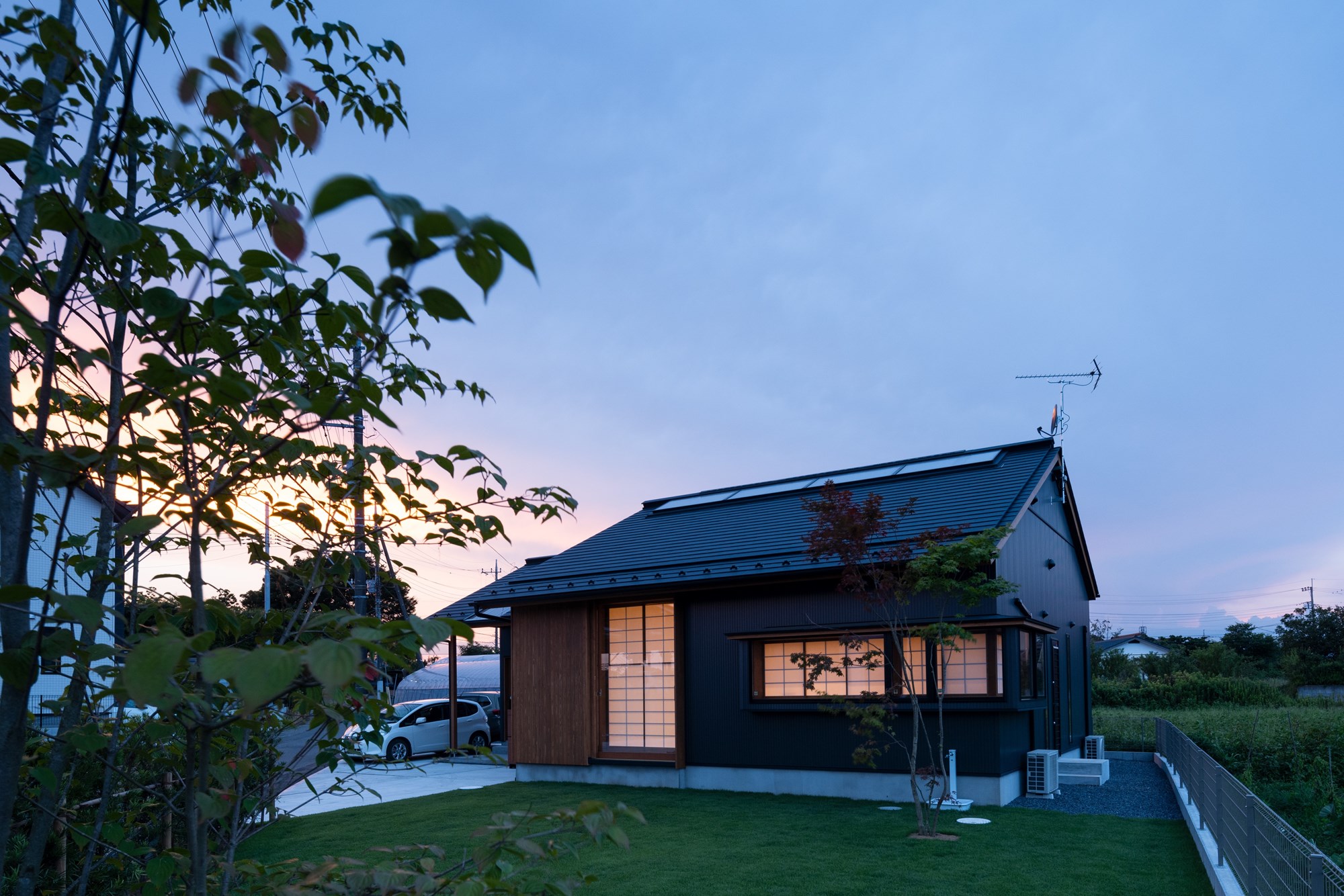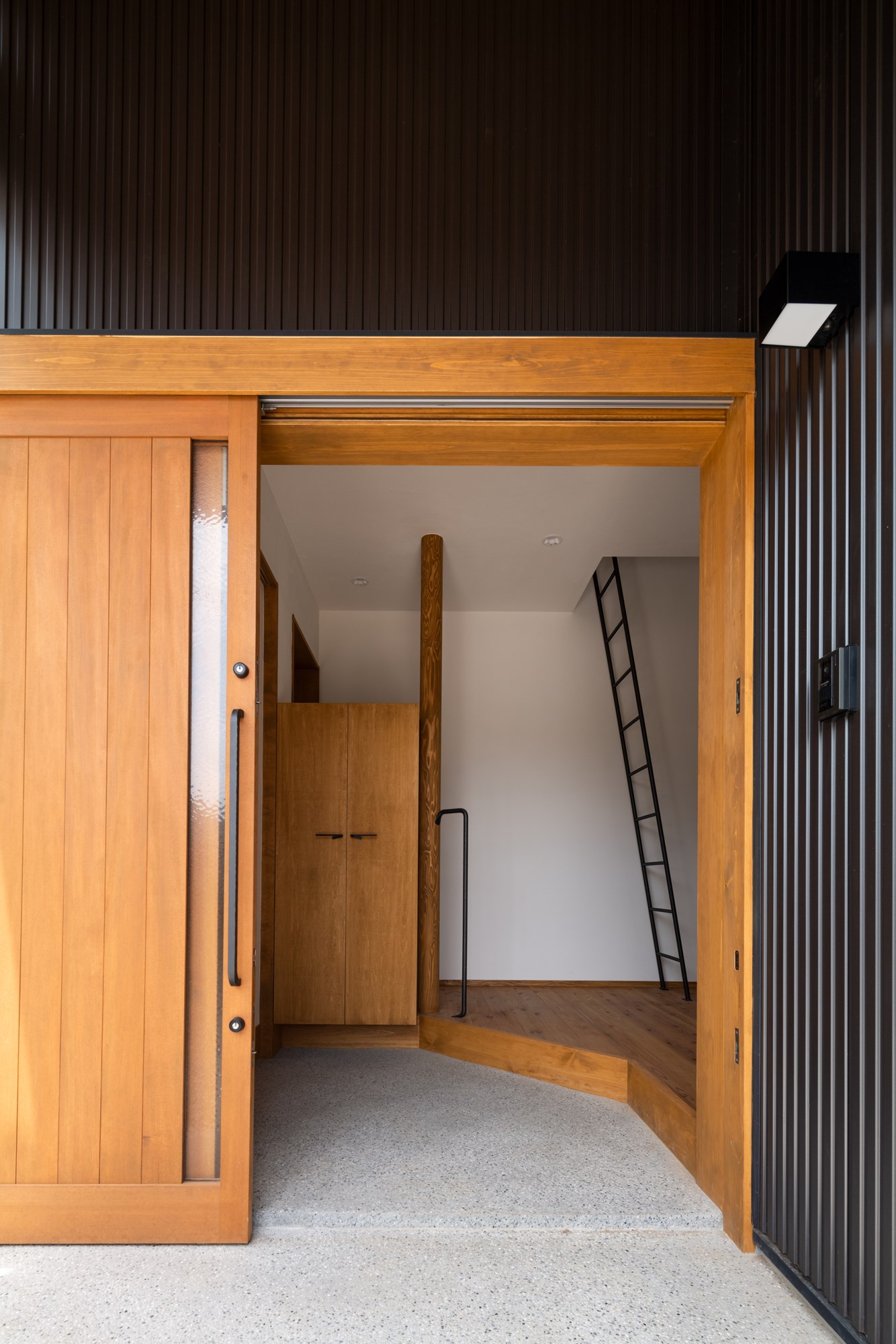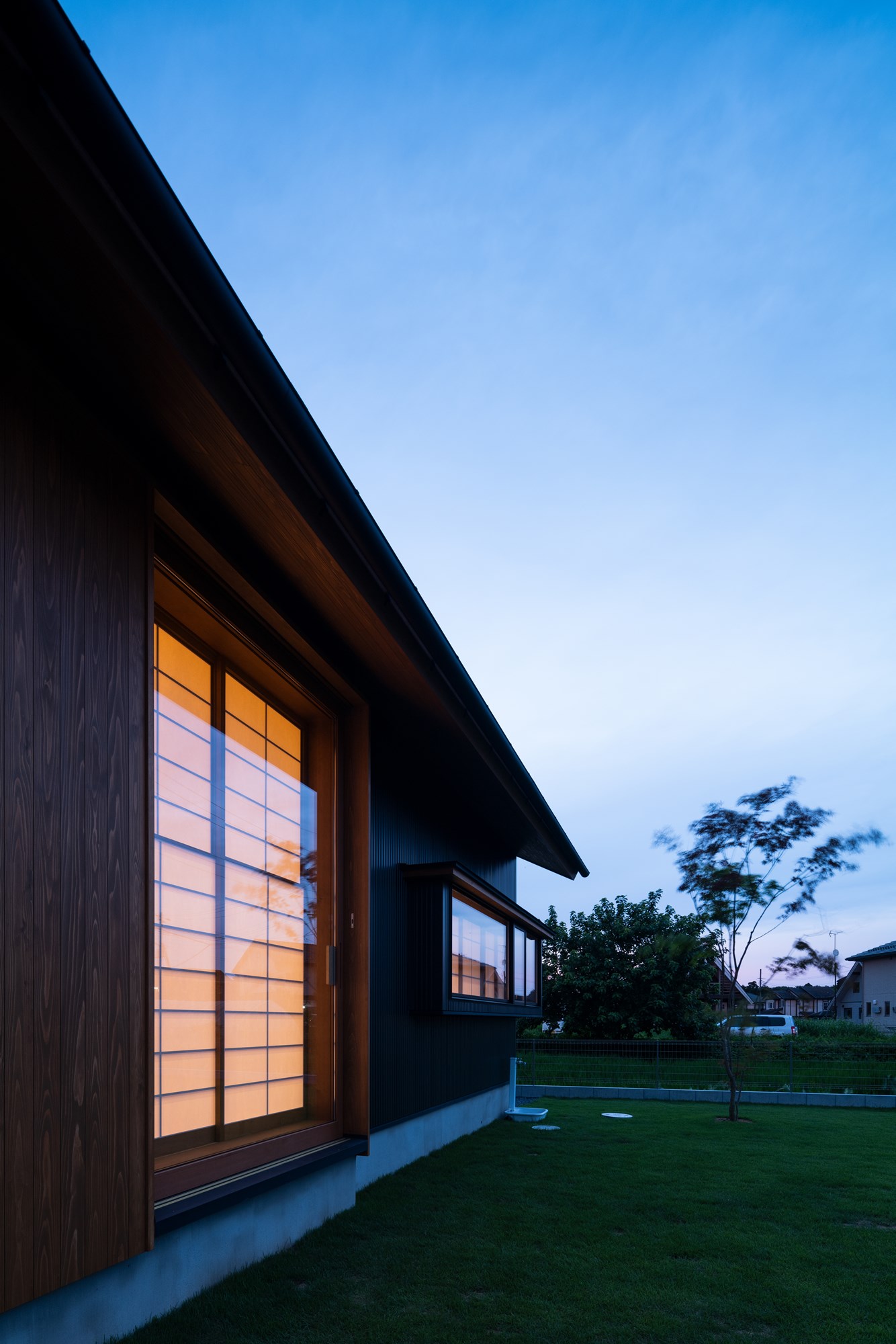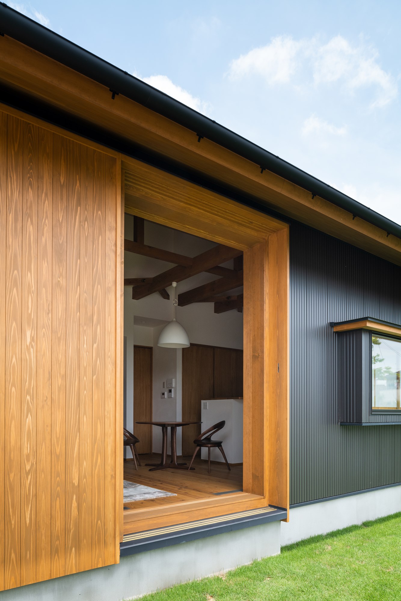 この住宅を特徴づけているのは、二つの世界を分ける「線」を強く引くことではなく、その線をにじませることです。内と外、日常と非日常、都市と地方、造作と既製――対極にあるはずの要素は、明確に区切られるのではなく、濃淡を変えながら互いに溶け合っていきます。太くはっきりとした境界もあれば、気づかないほど淡い境界もある。それらが重なり合うことで、空間は単一ではない奥行きを帯びていきます。