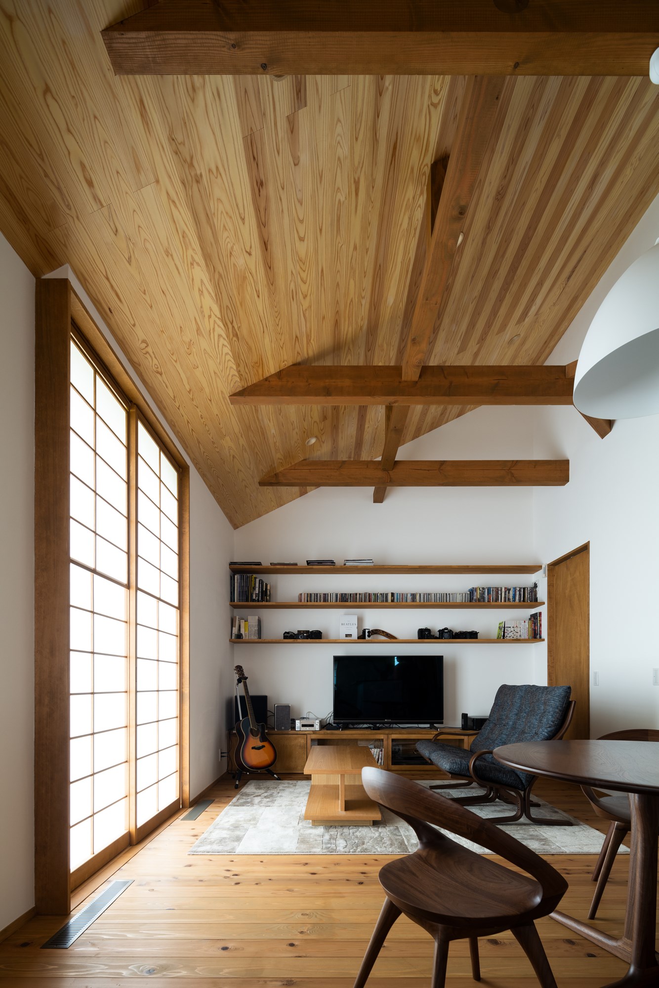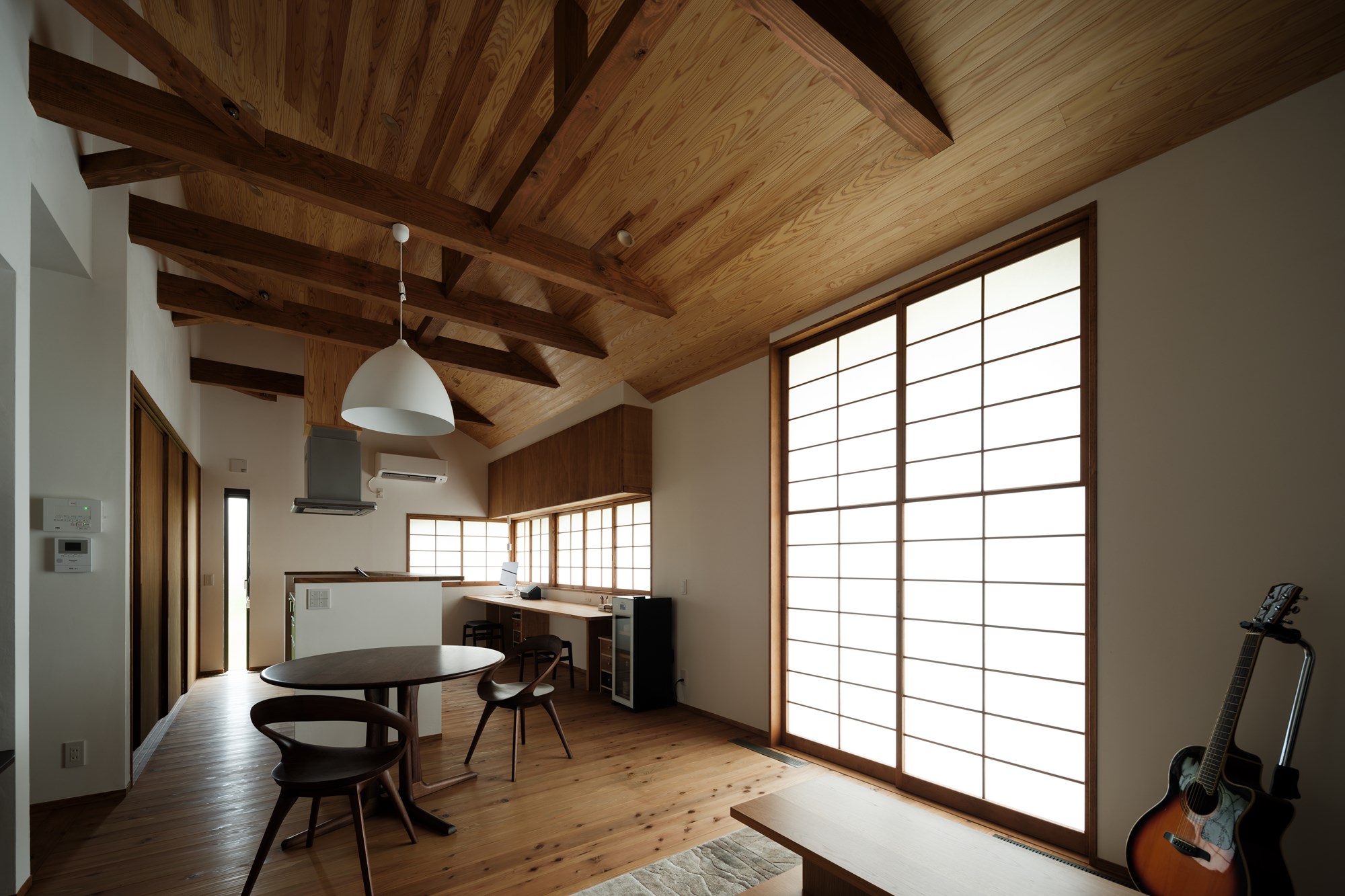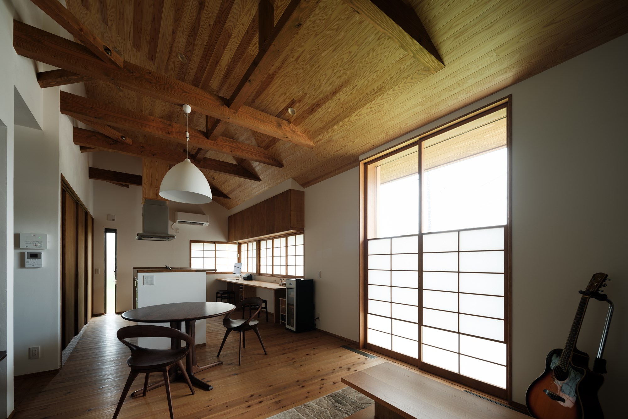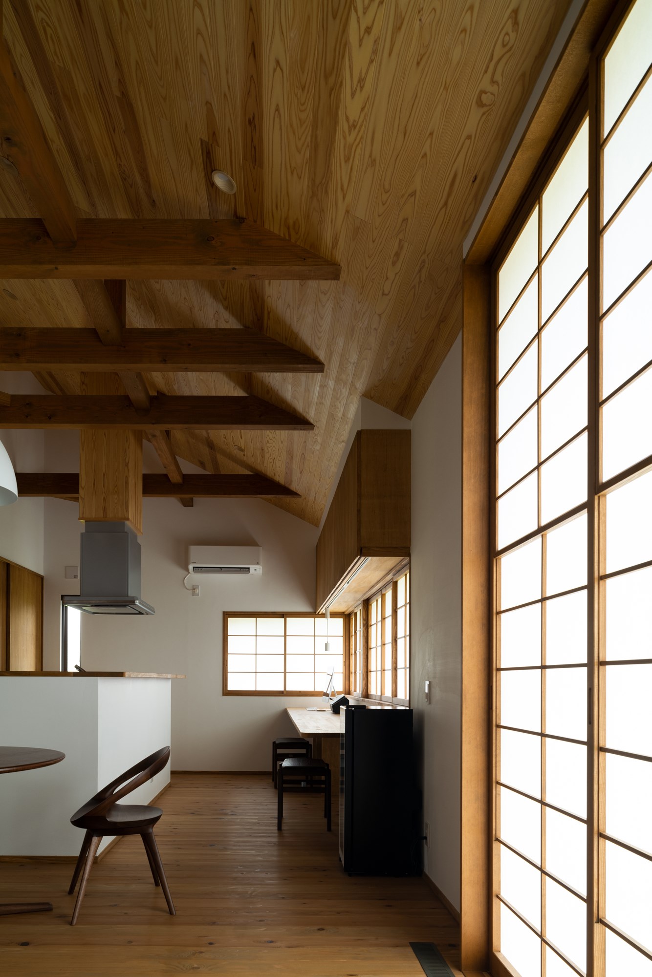 住まいには、木製サッシや太陽の熱を取り込む仕組みなど、いくつかの要望が丁寧に取り入れられています。