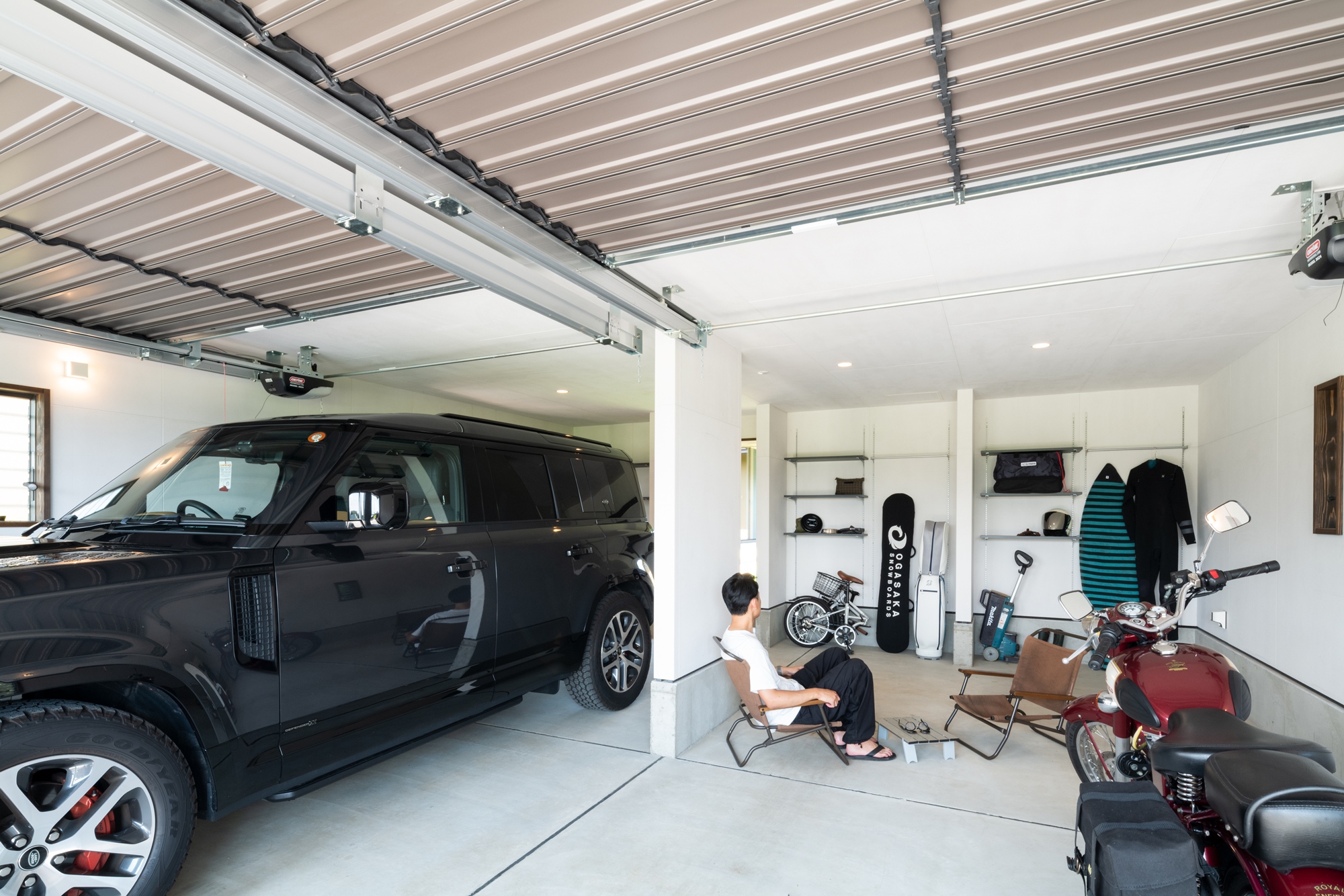 住宅棟をL字に、車庫棟を長方形に配し、そのあいだに生まれた余白を中庭としています。建築設計を点描のような行為だと思いました。