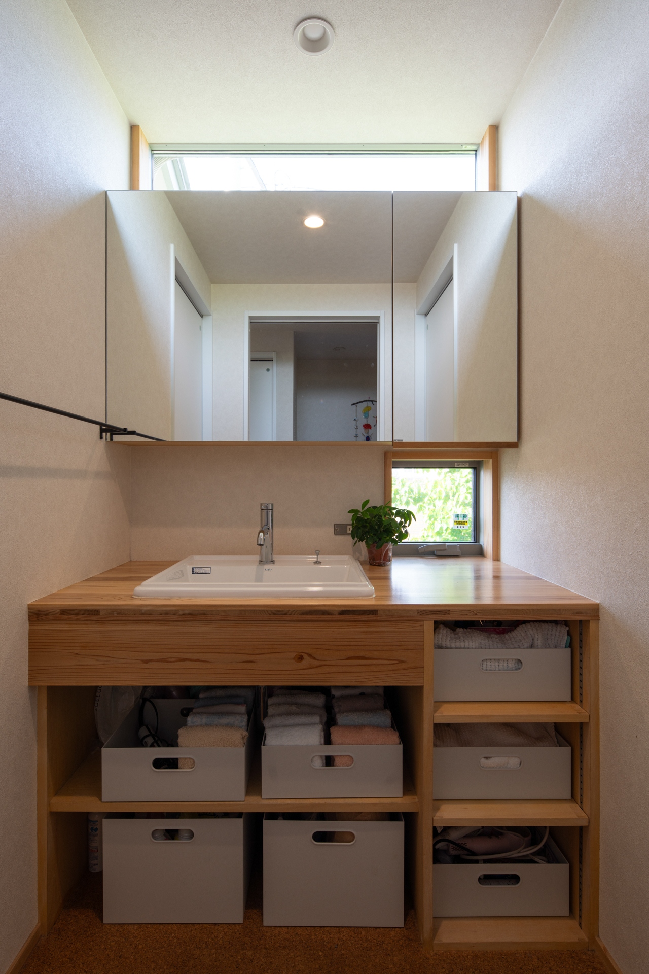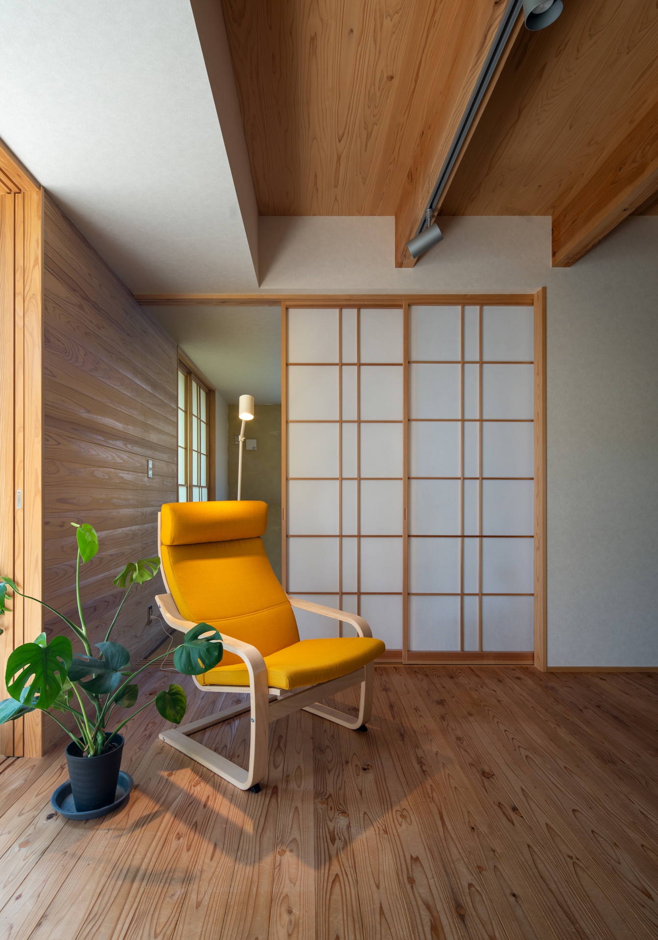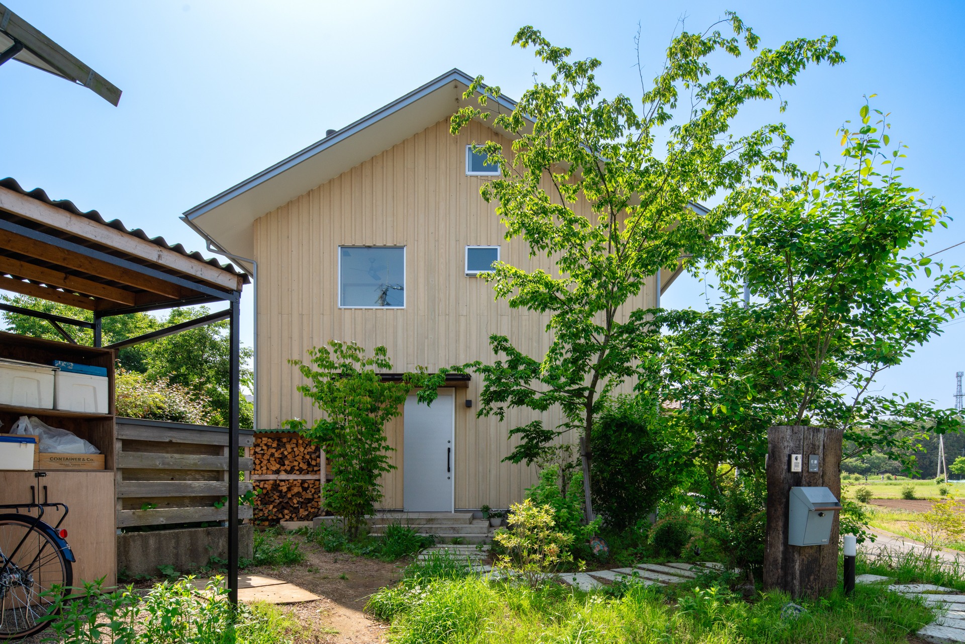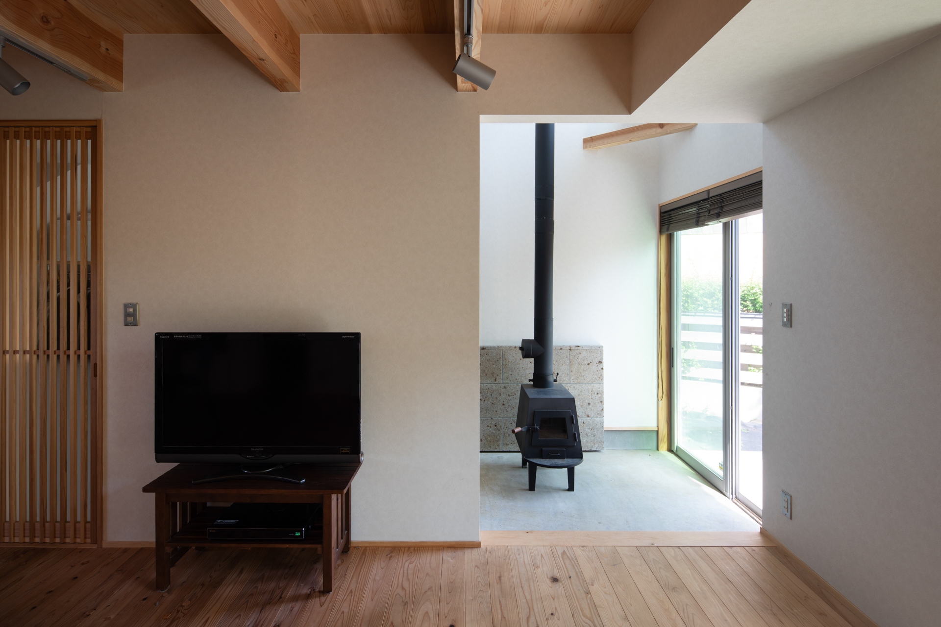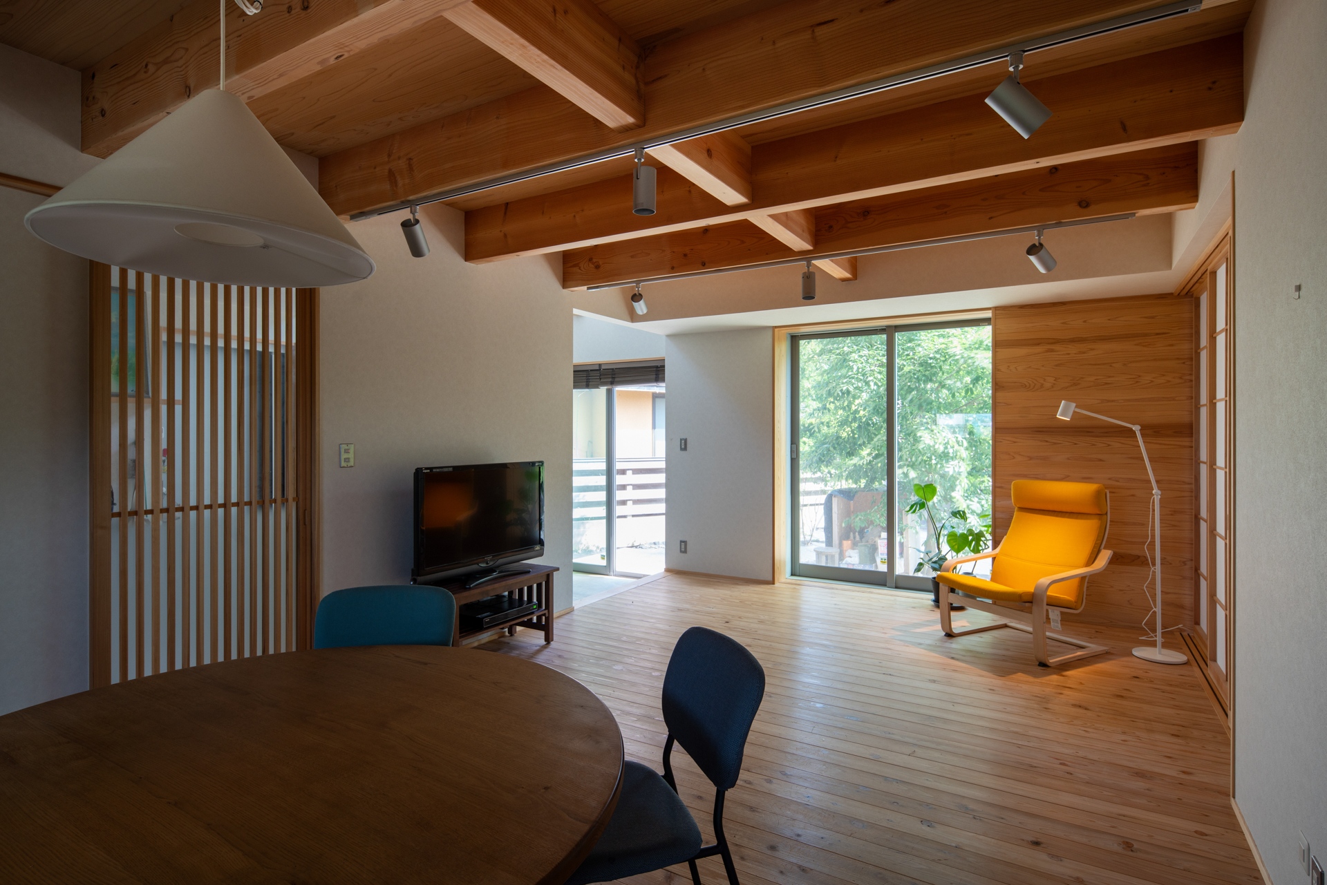 それにより、筑波山の稜線や南側の広がりある景色、敷地内の緑を日常の中で感じられる、地面に近い暮らしを実現できたかと思います。素材には無垢材をふんだんに用い、内外ともに木々の存在を感じられる構成としました。