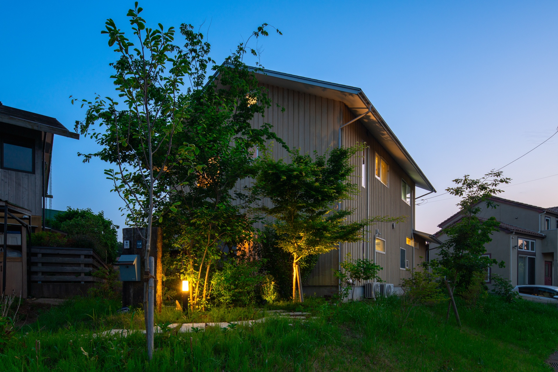時間の経過とともに深まる素材の表情を受け止めながら、自然と静かに向き合う、豊かで落ち着きのある住空間となっています。